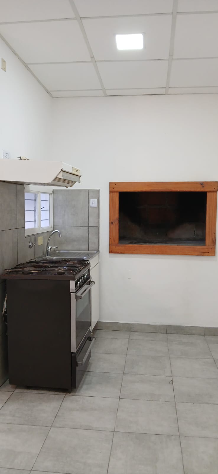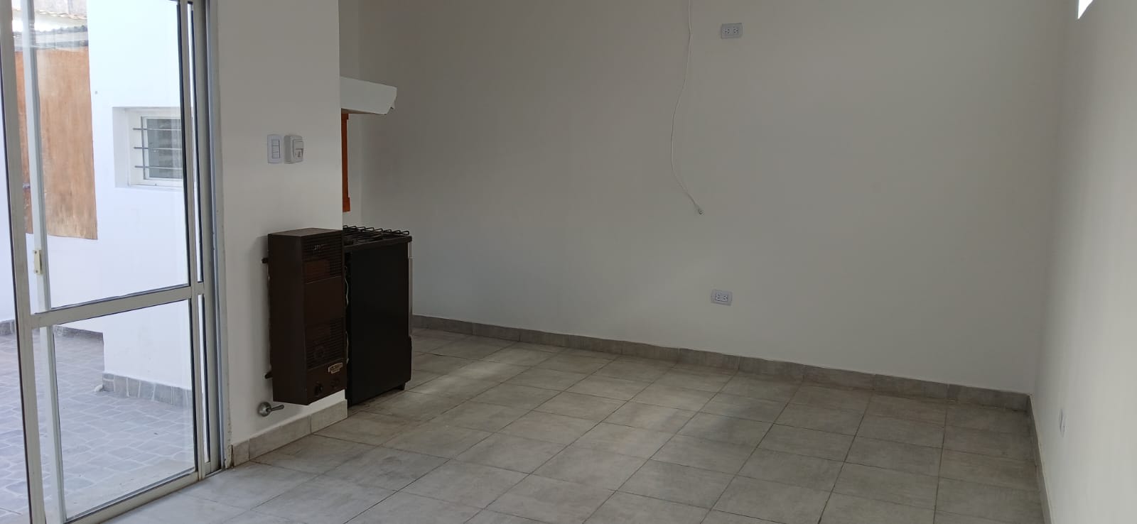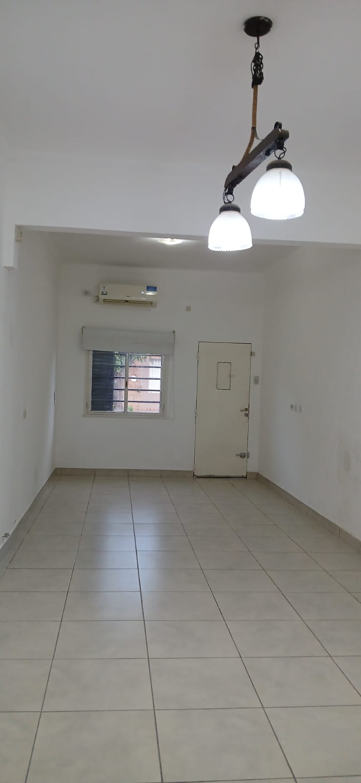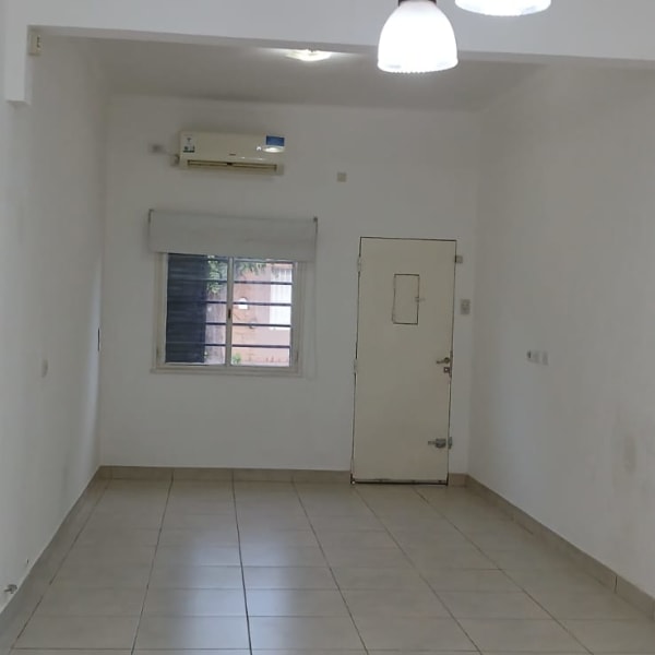 Living comedor con cocina industrial integrada y aire acondicionado.
