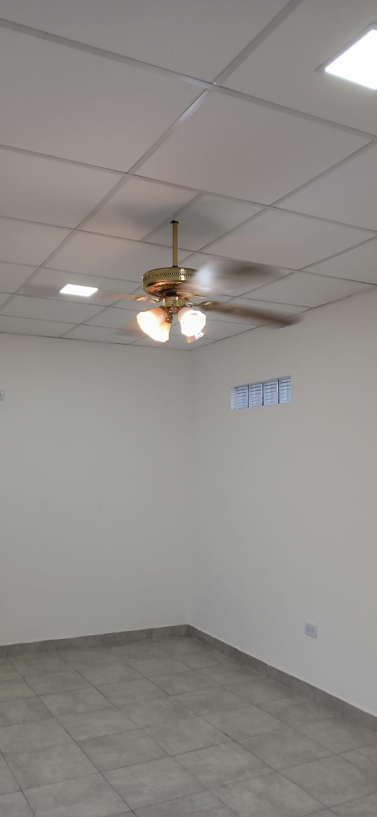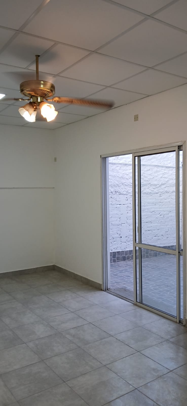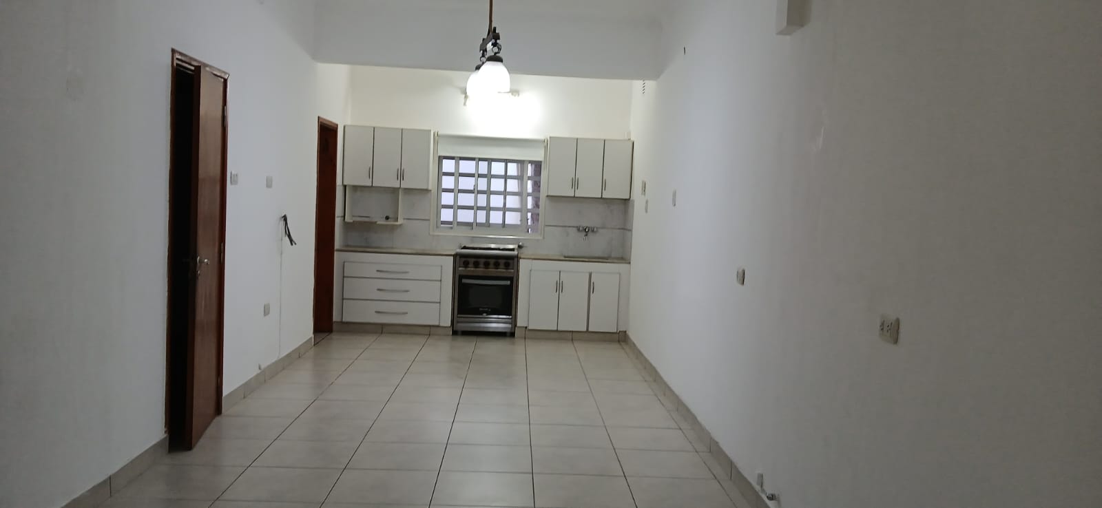Living comedor con cocina industrial integrada y aire acondicionado.